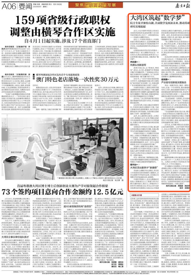 在专题研讨交流期间,许多专家学者围绕大湾区大学数学学科发展提出建议。他们认为,未来应广泛开展国际数学交流合作、推进数学与其他学科交叉研究,同时充分联动周边产业基础,实现产业链与创新链的深度融合,在工业软件设计、药物筛选、精密制造等方面将大有可为,“这里将来有望真正成为中国高等教育和创新的一个源头基地”。