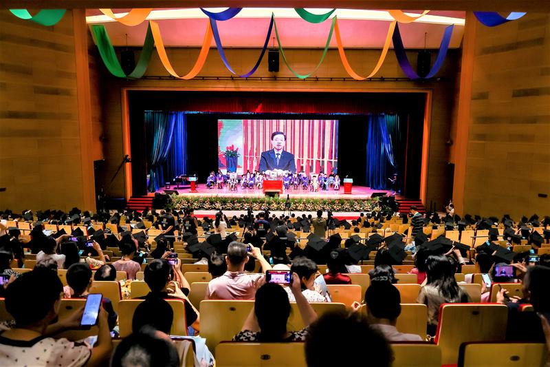 2023年6月30日,北京师范大学-香港浸会大学联合国际学院(中文简称:北师港浸大;英文简称:UIC)举行第十五届毕业典礼,近1600名本科生和900余名硕博研究生扬帆起航,再启征程。香港特别行政区第六任行政长官李家超,中国量子通信领域主要开创者、中国科学技术大学常务副校长潘建伟院士,香港浸会大学校董会暨咨议会主席陈镇仁博士,香港浸会大学第六任校长卫炳江教授,中国科学院院士、UIC校长汤涛教授分别向毕业生殷殷寄语,送上美好祝福。