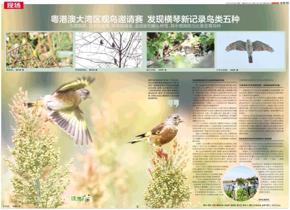 “28个队伍在同一时间去到了横琴的不同地方,在很短时间内给横琴鸟类做一个全面的调查,也取得发现新鸟种这样的成果。此外,从这次观鸟的结果,可以看到这几年生态修复的效果。”珠海市观鸟协会副会长李芳华表示。