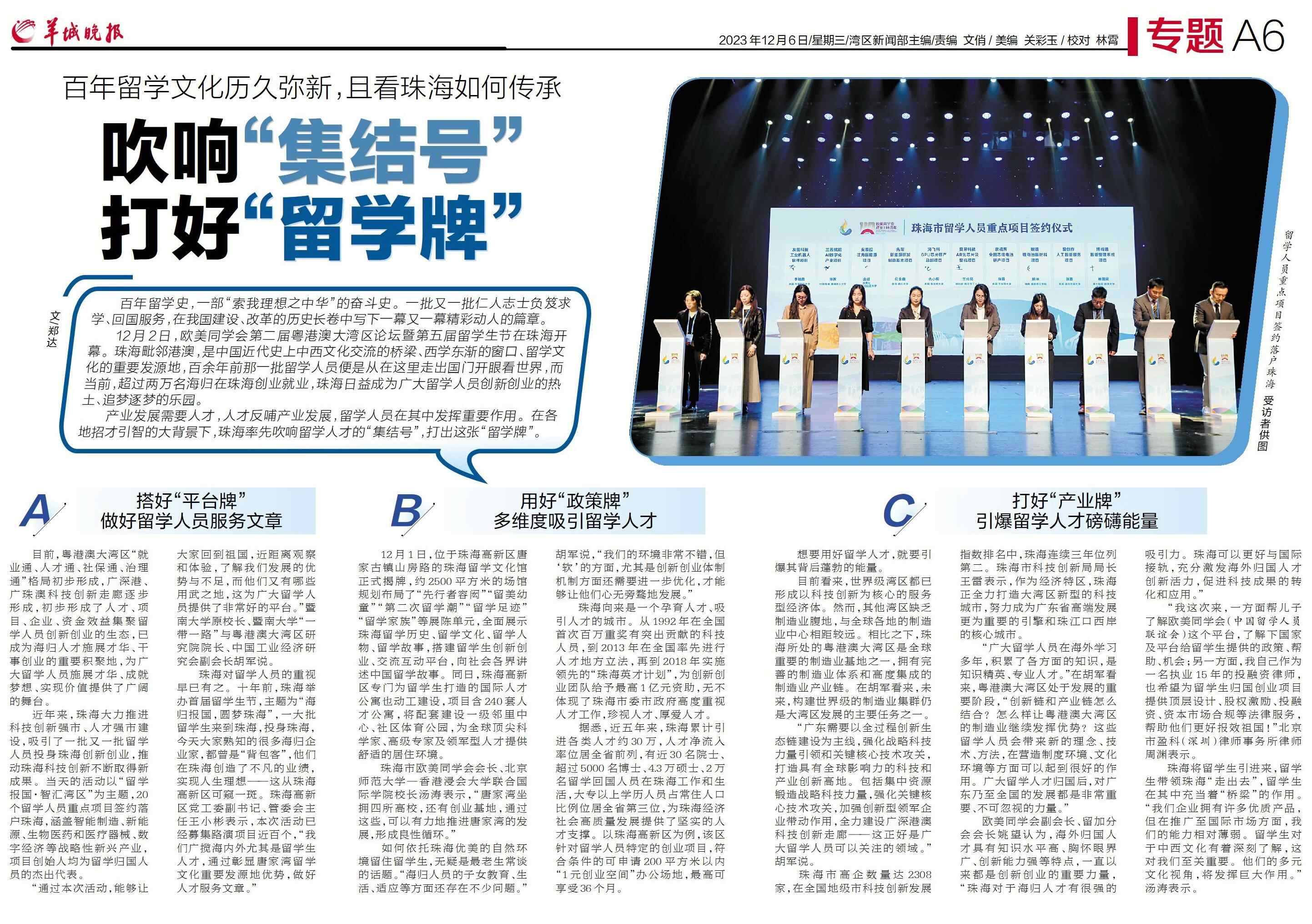 产业发展需要人才,人才反哺产业发展,留学人员在其中发挥重要作用。在各地招才引智的大背景下,珠海率先吹响留学人才的“集结号”,打出这张“留学牌”。