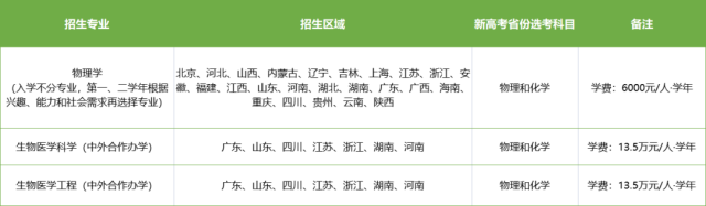 学校设置了物理学、生物医学科学、生物医学工程三个招生专业。其中,生物医学科学、生物医学工程均属于中外合作办学专业,是今年新增的招生专业。