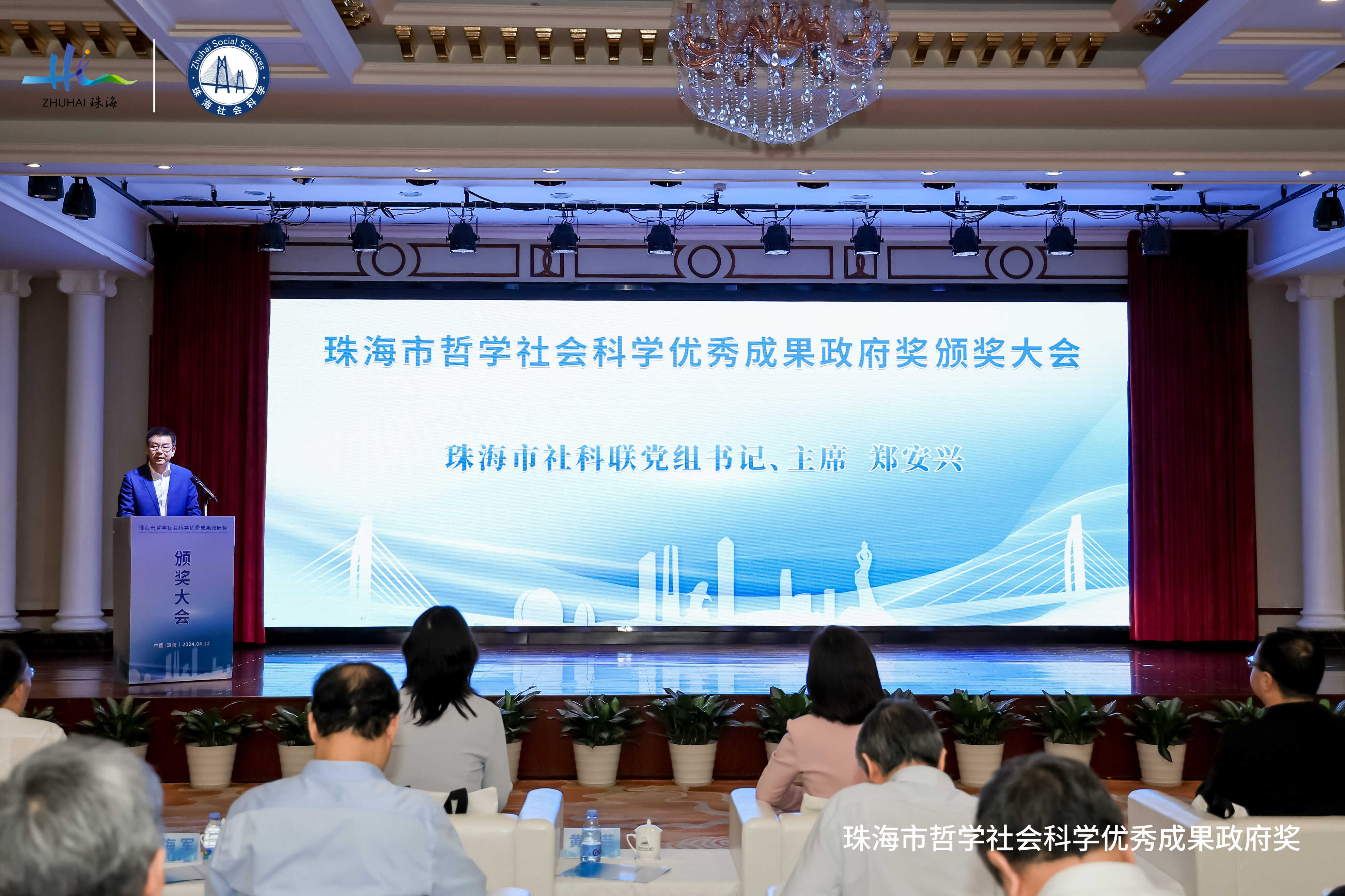 4月22日下午,第五届珠海市哲学社会科学优秀成果政府奖颁奖大会在珠海度假村召开,展示近年来珠海哲学社会科学取得的丰硕成果。