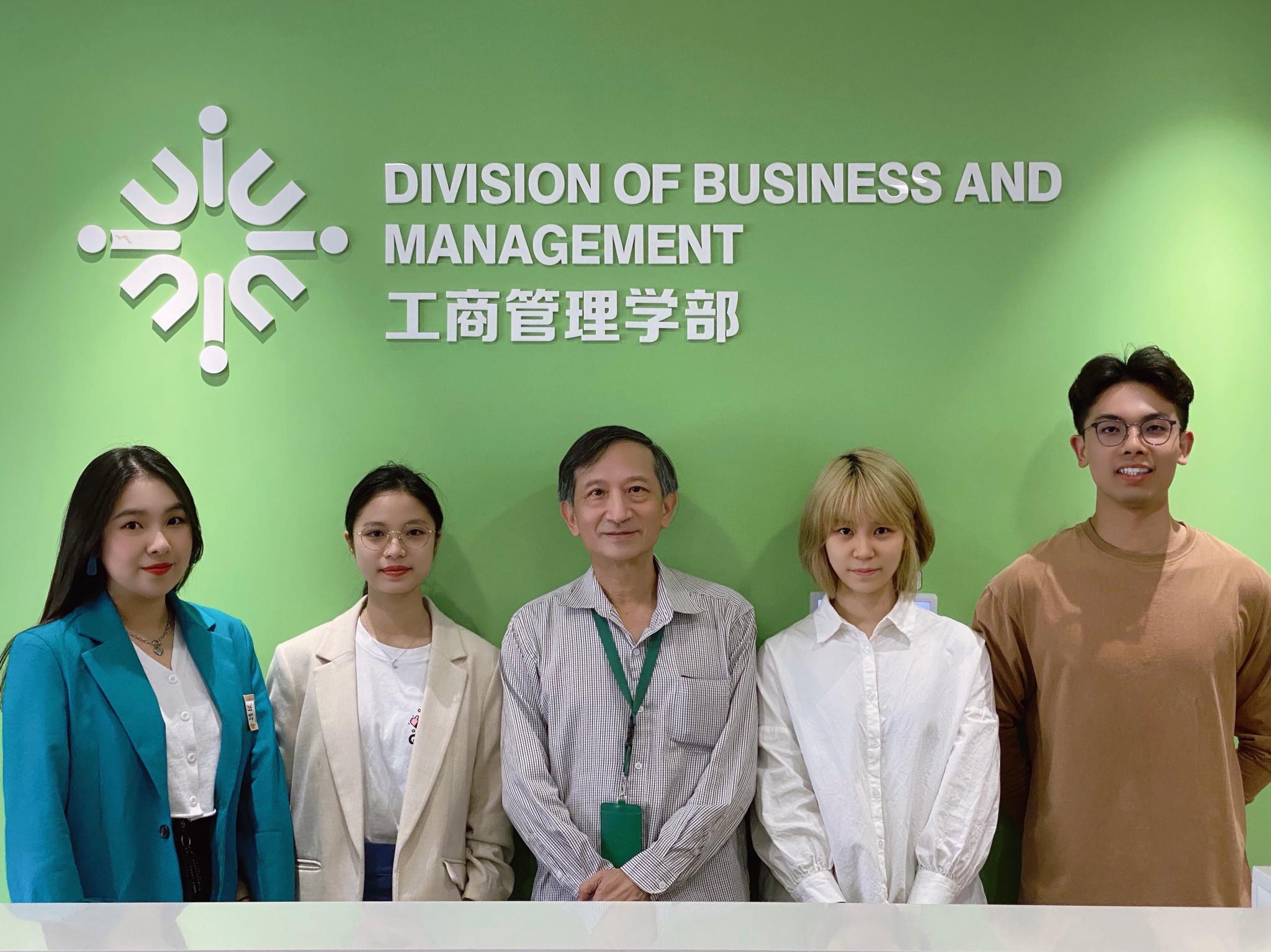 秦雷(右一)和汇丰商赛团队成员与财务学专业课程主任吴明瑜博士(中)