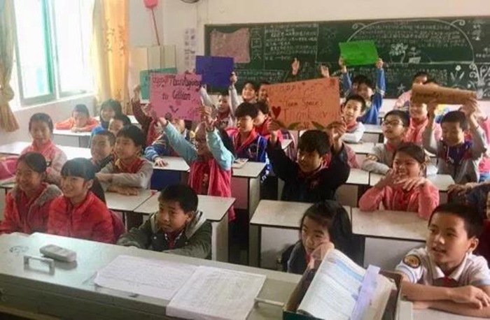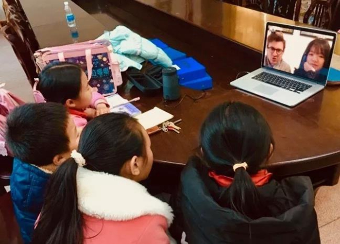 得分更高的学生还会有一个意想不到的特权。钟老师会请自己在北京、英国或西藏的朋友作为神秘嘉宾,来跟孩子进行一个一对一的视频。这些神秘嘉宾会结合他们的人生阅历去和学生分享一些不一样的东西。有太多的同学好奇视频对面的人是什么样的、又在说些什么,所以当一个孩子在跟神秘嘉宾视频的时候,总会有很多个小小的“偷窥者”躲在门后面好奇的往教室里面张望。这样的奖励很有神秘感,学生对此也感到非常期待。