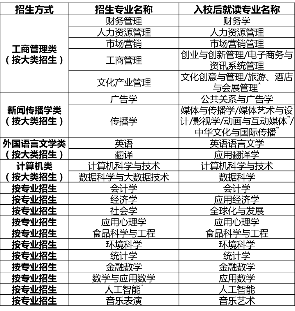 注: *人工智能为2021年新增专业,文化产业管理(旅游、酒店与会展管理)、传播学(动画与互动媒体)、传播学(中华文化与国际传播)为2021年新增专业方向。