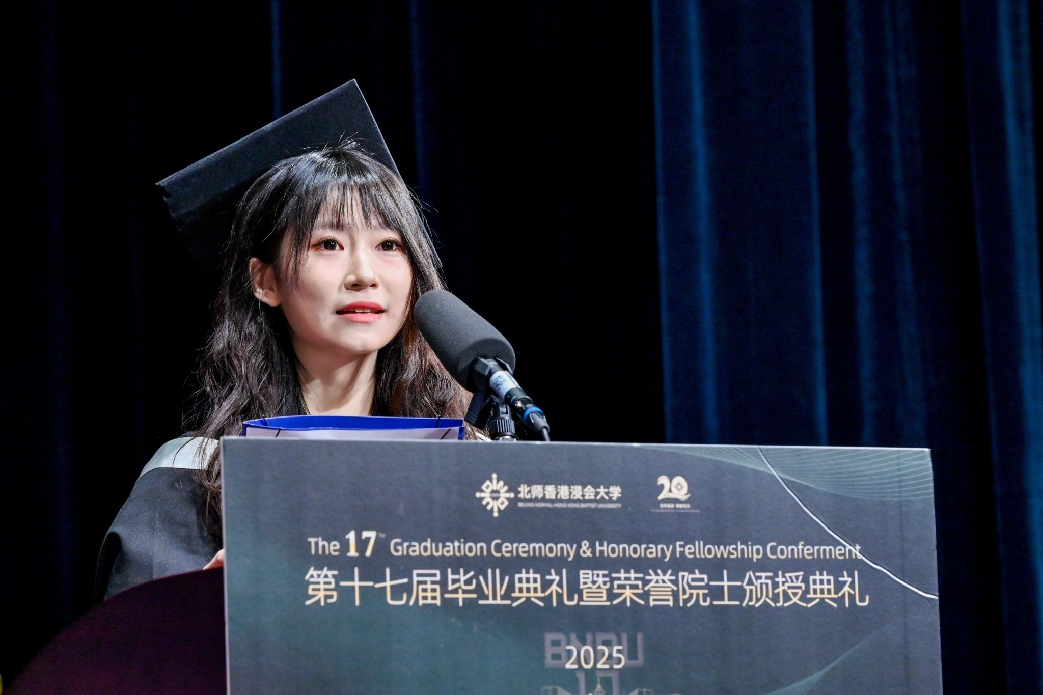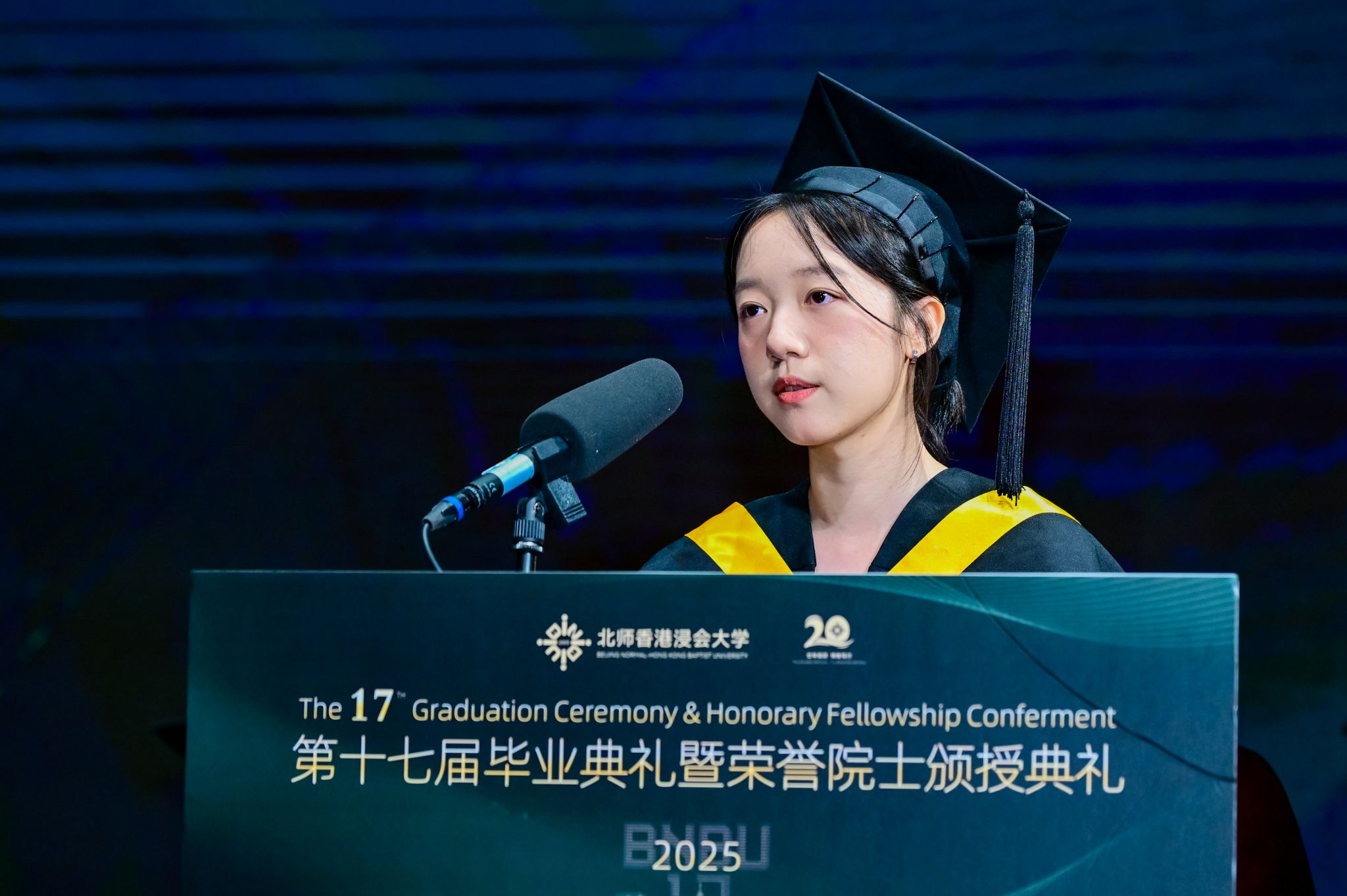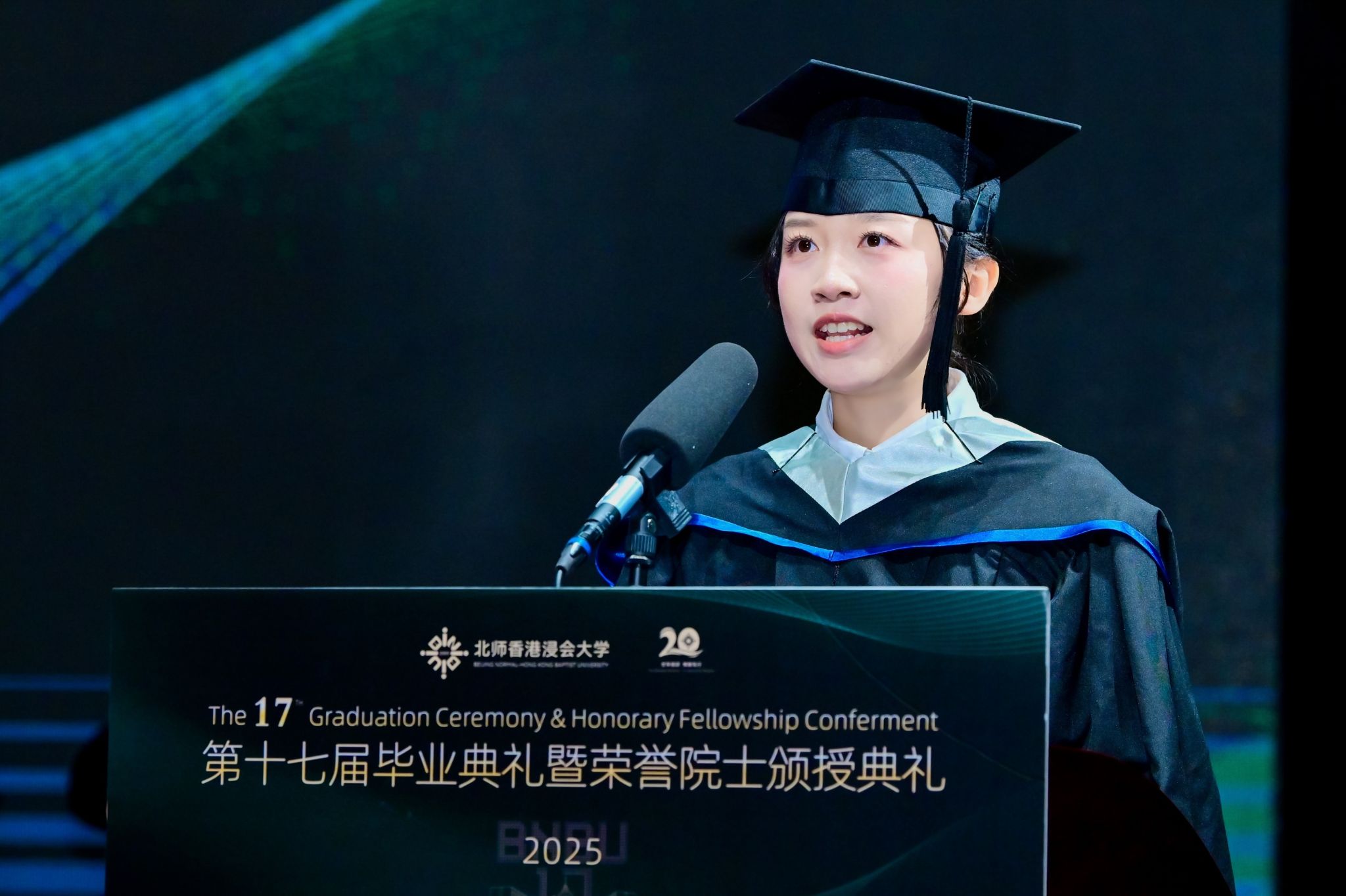 在毕业季的聚光灯下,七位来自不同专业、拥有独特经历的2025届毕业生代表走上台前,分享了他们在北师港浸大这片创新沃土上汲取的养分、经历的蜕变与收获的成长。