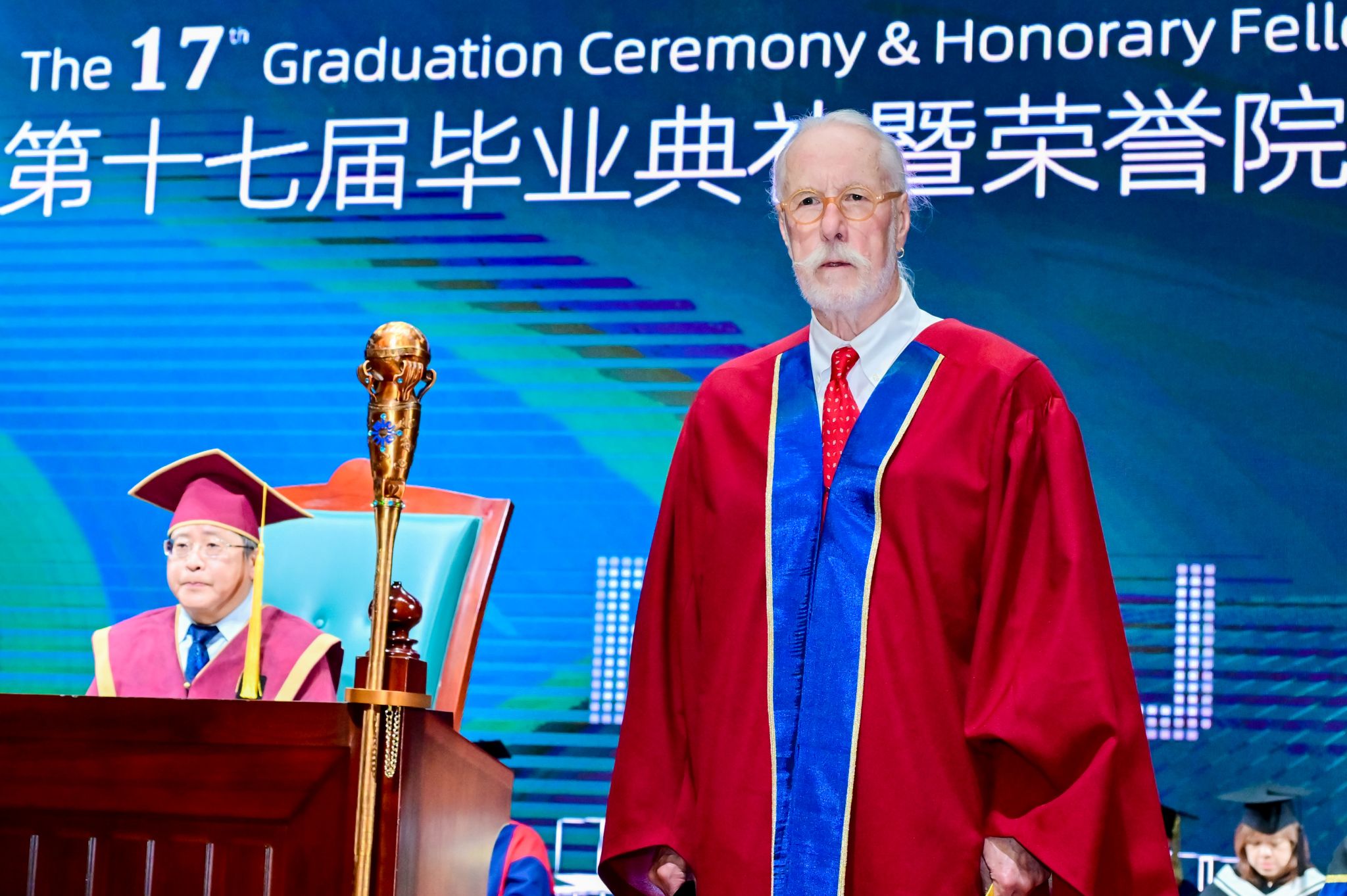 今年,北师港浸大颁授荣誉院士荣衔予五位来自科学、教育、文化等不同领域的杰出人士,包括:诺贝尔经济学奖得主、美国国家科学院院士Robert John Aumann教授,中国科学院院士、中国数学会概率统计分会理事长陈松蹊教授,美国著名汉学家、威斯康星大学麦迪逊分校荣休讲座教授倪豪士(William H. Nienhauser, Jr.)教授,全国脱贫攻坚先进个人、上海真爱梦想公益基金会创始人潘江雪女士,香港SML集团创始人、饶宗颐学术馆之友创会会长孙少文博士,表彰他们在各自领域取得卓越成就并积极奉献社会,同时激励学子见贤思齐,为实现人生价值而奋斗。颁授典礼由北师港浸大校董会主席、北京师范大学常务副校长王守军博士主礼。香港浸会大学校董会暨咨议会主席黄英豪博士、香港浸会大学校长卫炳江教授亦出席典礼现场。