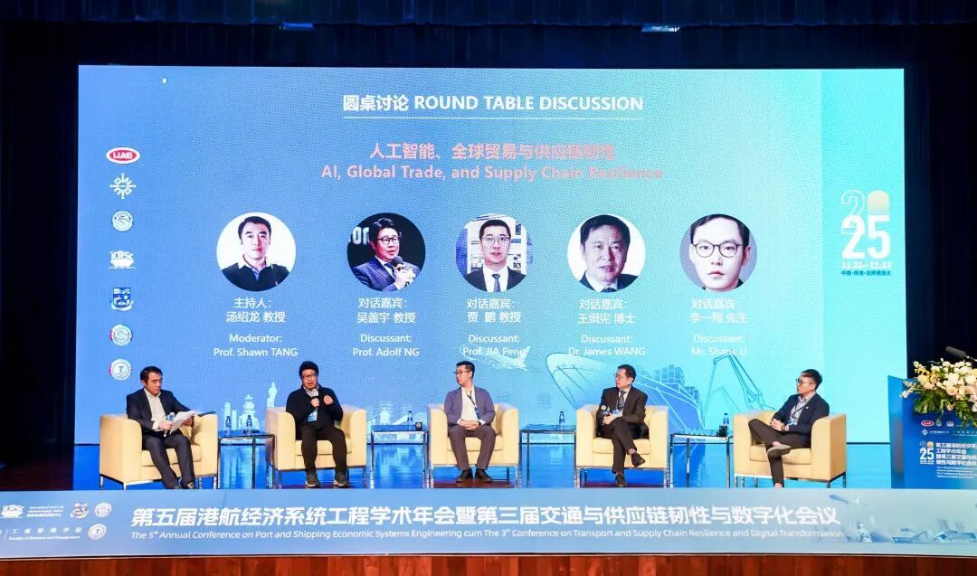 此外,在圆桌讨论环节,北师港浸大工商管理学院院长吴盖宇与中国系统工程学会港航经济系统工程专业委员会副主任委员贾鹏、“一带一路”国际合作香港中心及大湾区香港中心研究总监王缉宪、Red Leaf Capital总裁兼首席执行官李一翔等嘉宾围绕“人工智能、全球贸易与供应链韧性”进行跨界对话,从技术、政策与国际合作等多角度提出前瞻见解。