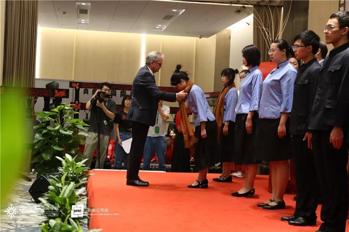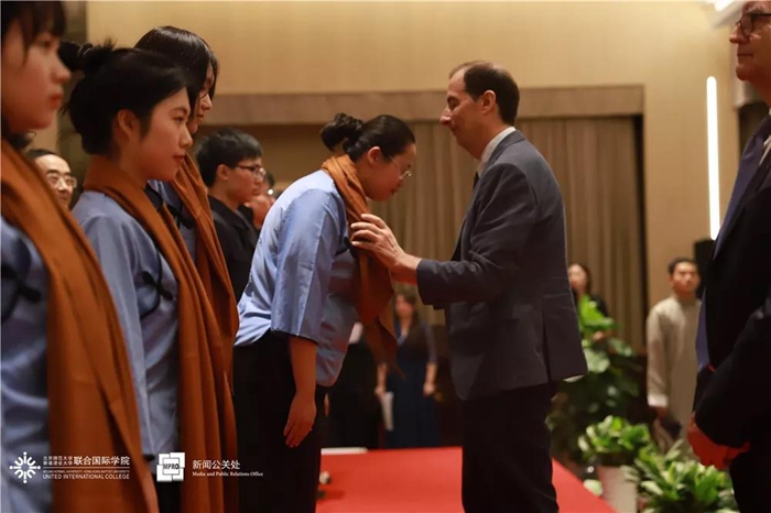 文化与创意学部院长Brian Clarke教授为学生披巾