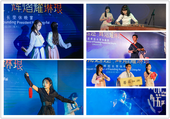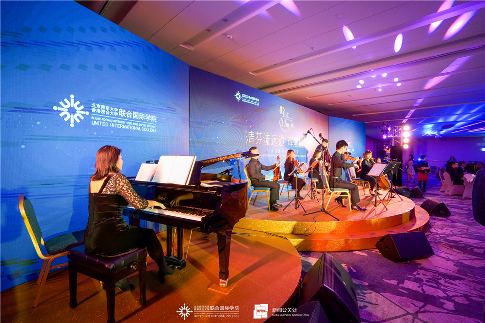 晚宴节目结合中西艺术,充分展现创意。既有室内管弦乐表演,又有中国传统文艺展演;既有原创歌曲《一路同行》合唱,又有阿卡贝拉版UIC校歌。
