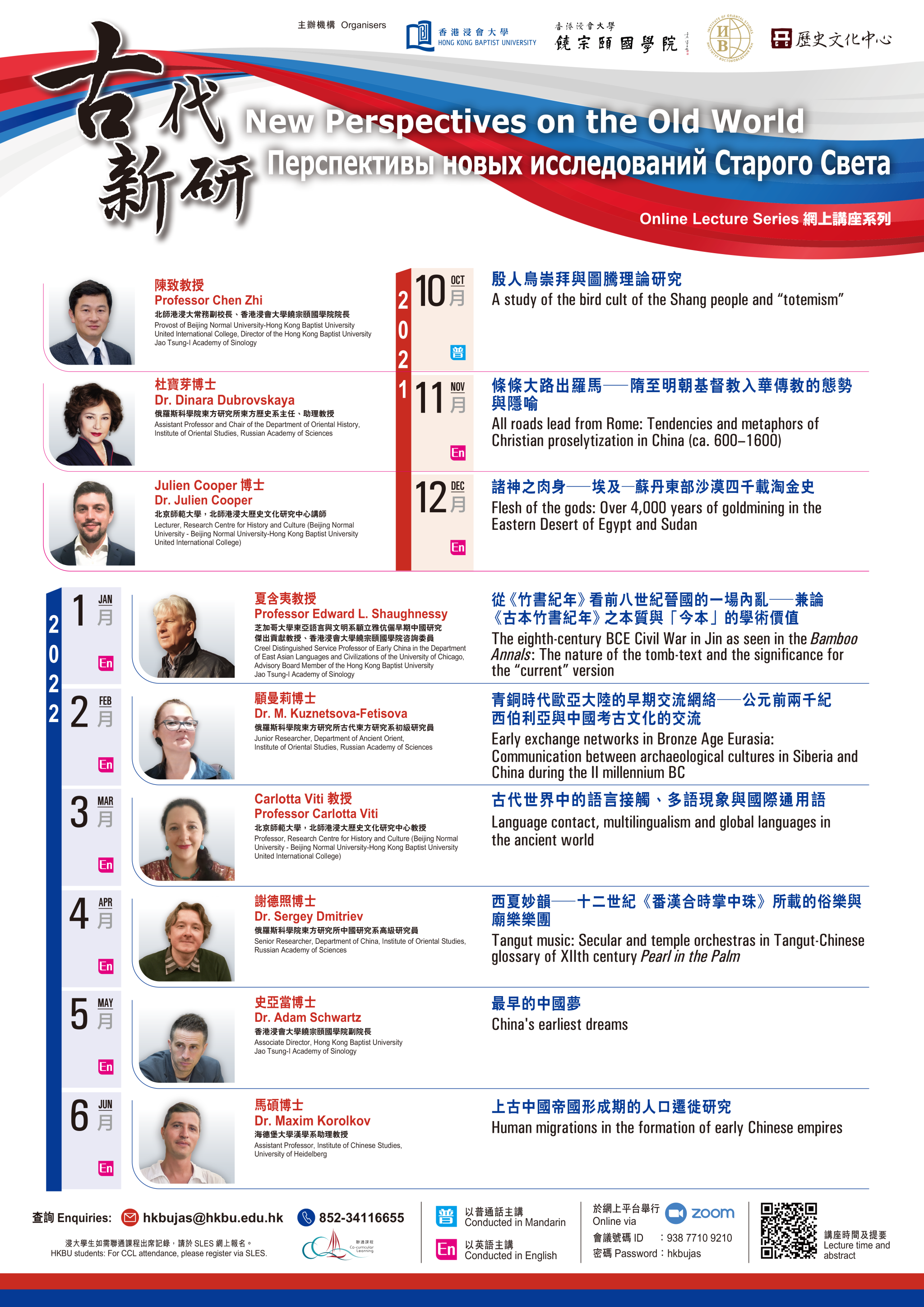 香港浸会大学饶宗颐国学院和俄罗斯科学院东方研究所(The Institute of Oriental Studies, Russian Academy of Sciences)自签署五年科研合作协议后,今年十月即将举办首个合作活动。双方将连同北京师范大学、北师港浸大(UIC)历史文化研究中心,共同主办一个主题为「古代新研」的网上讲座系列,从今年十月到明年六月期间每月一场。