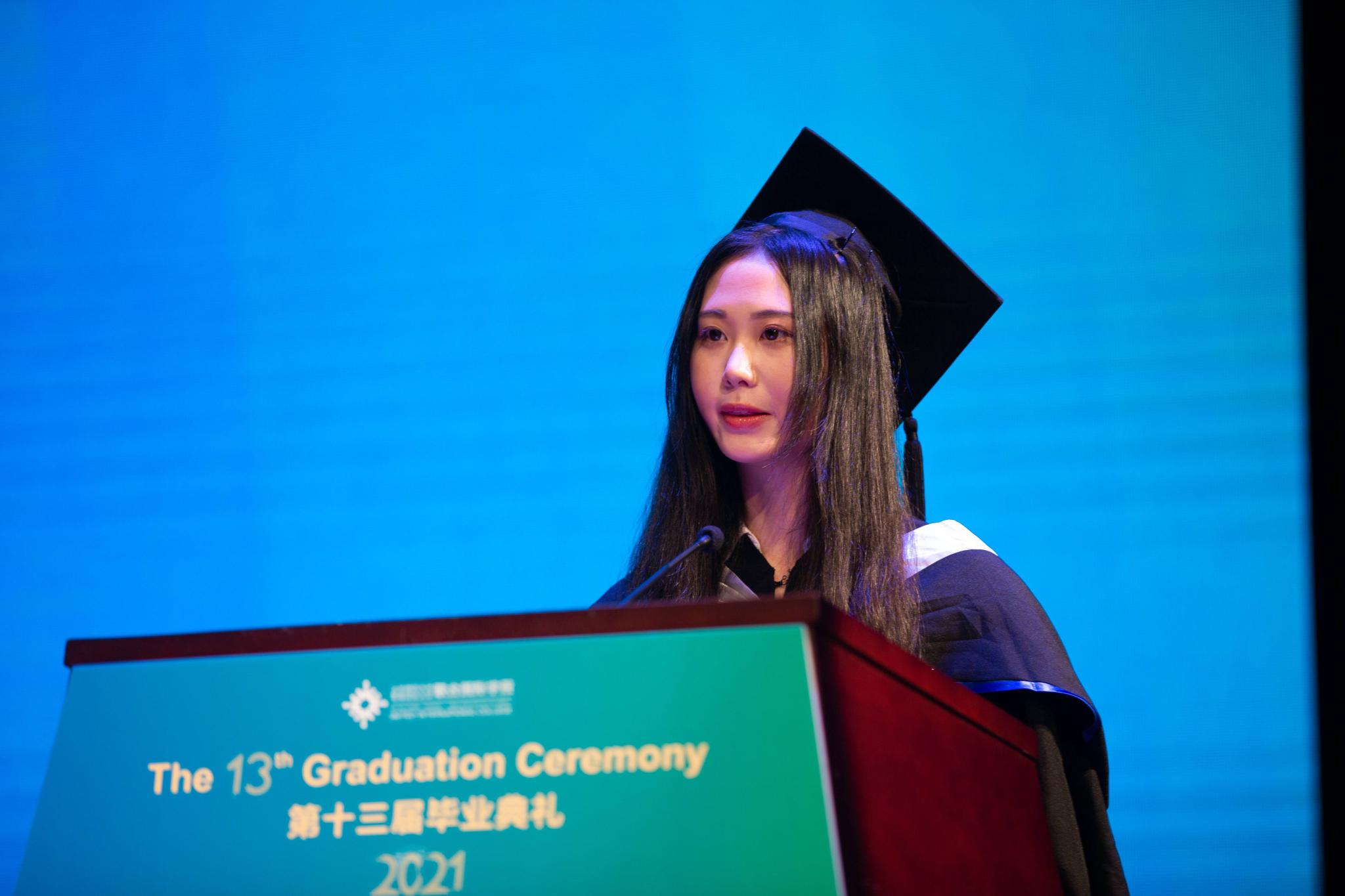 I am Chen Yingtong, a graduate of the BBA (Honours) Programme in Accounting. After today's ceremony, the Class of 2021 will officially leave UIC. We are sad, but glad at the same time. We can't wait to move on to the next chapter of our lives!