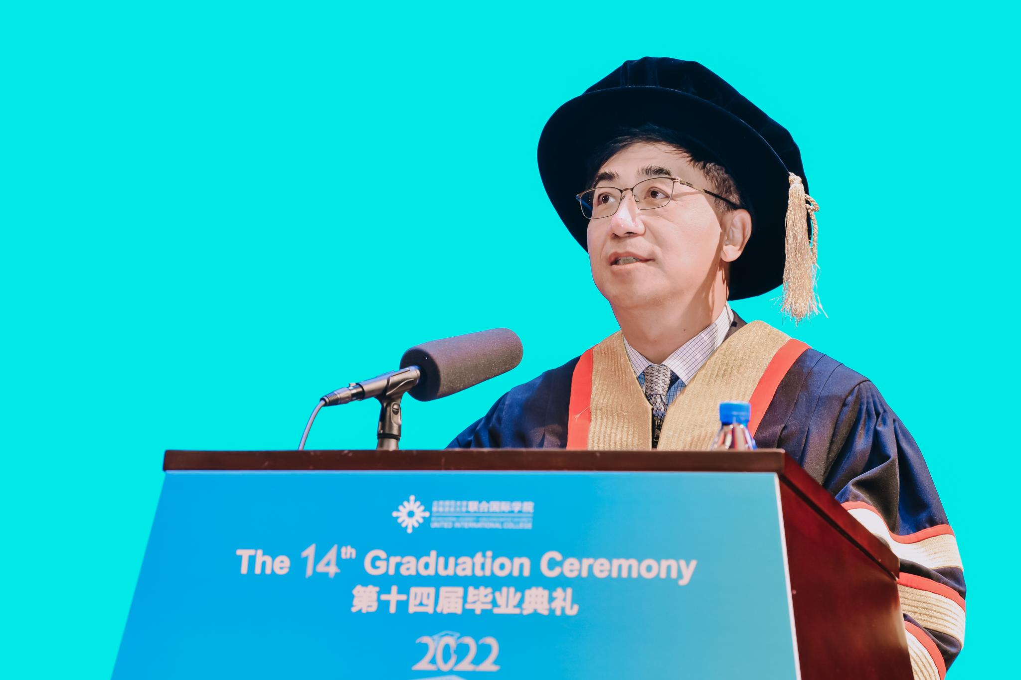 Summer is here, and so is a turning point in the lives of our graduates. It is the time to mark an end and a time to celebrate a new beginning. To help our graduates celebrate this turning point in life, I am proud to present Professor Chen Shi-yi, a star of science, a member of the Chinese Academy of Sciences, and above all, an outstanding educator. He is the model of what you can one day become. Please join me in giving our distinguished guest the warmest UIC welcome.